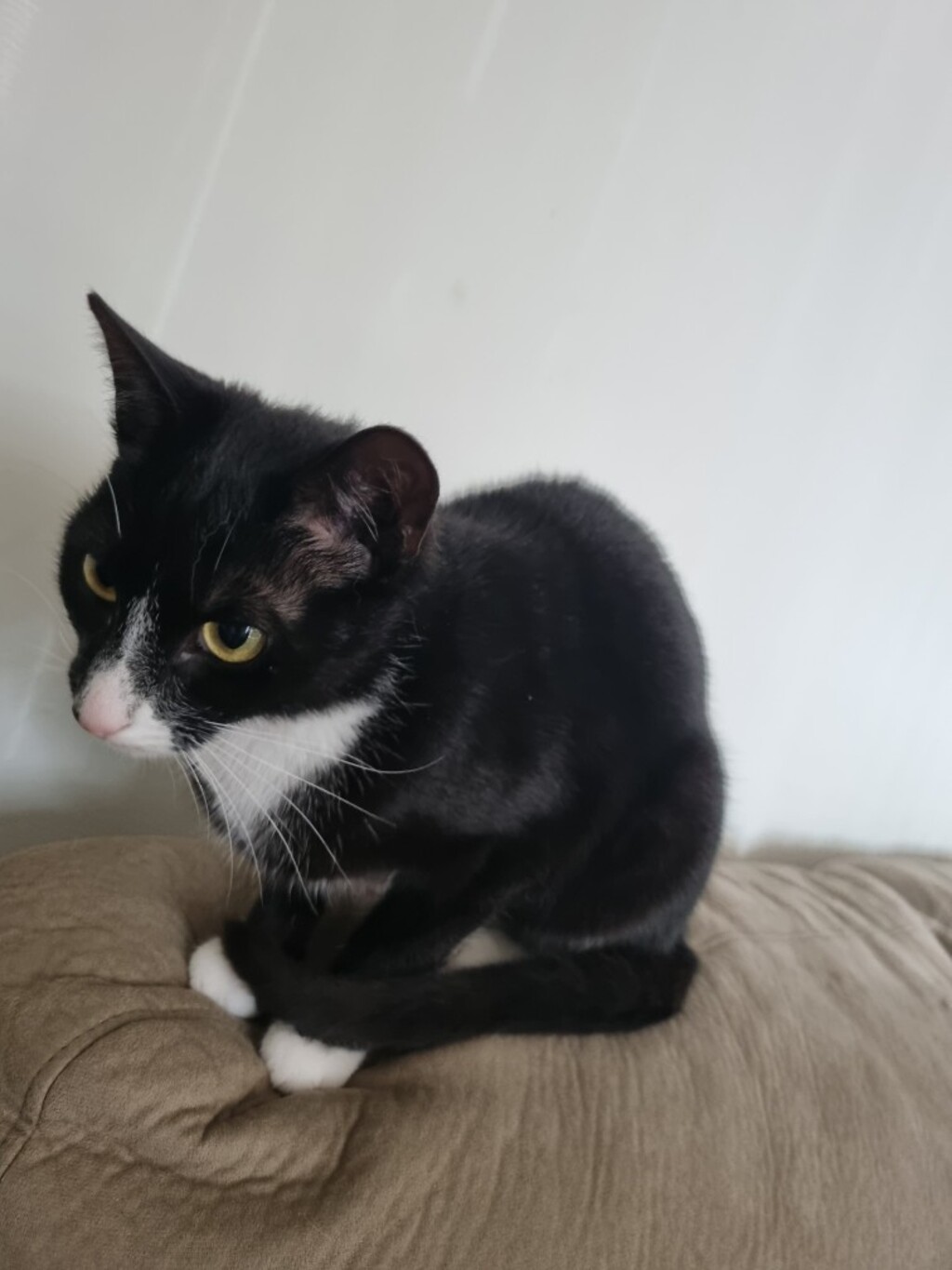 WHITTENY #397C is a quiet, shy little 12 month old lady. She is very affectionate once you have gained her trust. She is a lap kitty who loves to sleep on you. She needs to be an only cat, as in her previous home she was terrorised by an older cat and does not trust other felines. While she tolerates other cats she is constantly on edge expecting to be stalked.