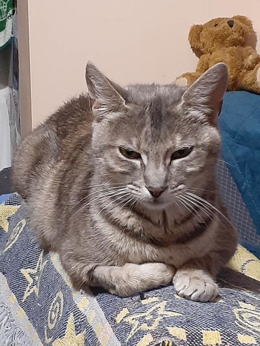 Older sweet mumma cat who adores cuddles and a lap to curl up and sleep