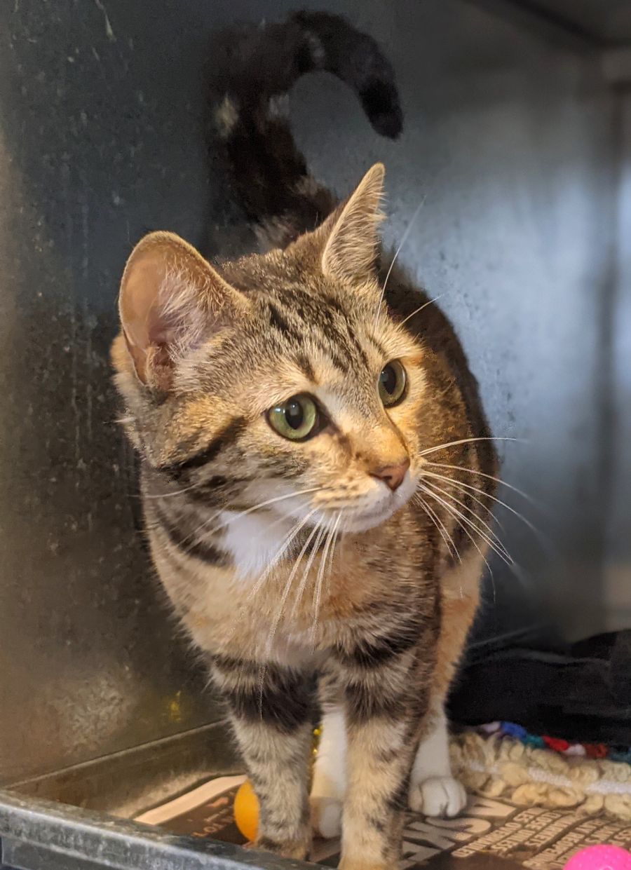 Meow Meow is a delightful, approx. 1 year old girl in need of a new home.