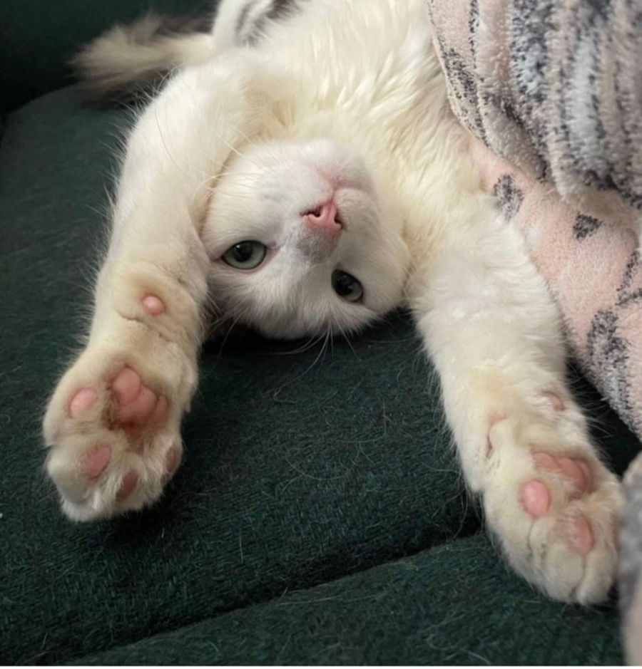 ***Storm is only to be adopted to a strictly indoor only home for his safety!He has a lot of white making him prone to skin cancer, but also because of the fact that he’s very timid so if he got outside he would run and hide and you wouldn’t ever see him again. A secure covered outdoor cat run is a great investment though too if this is something you may also be interested in.
