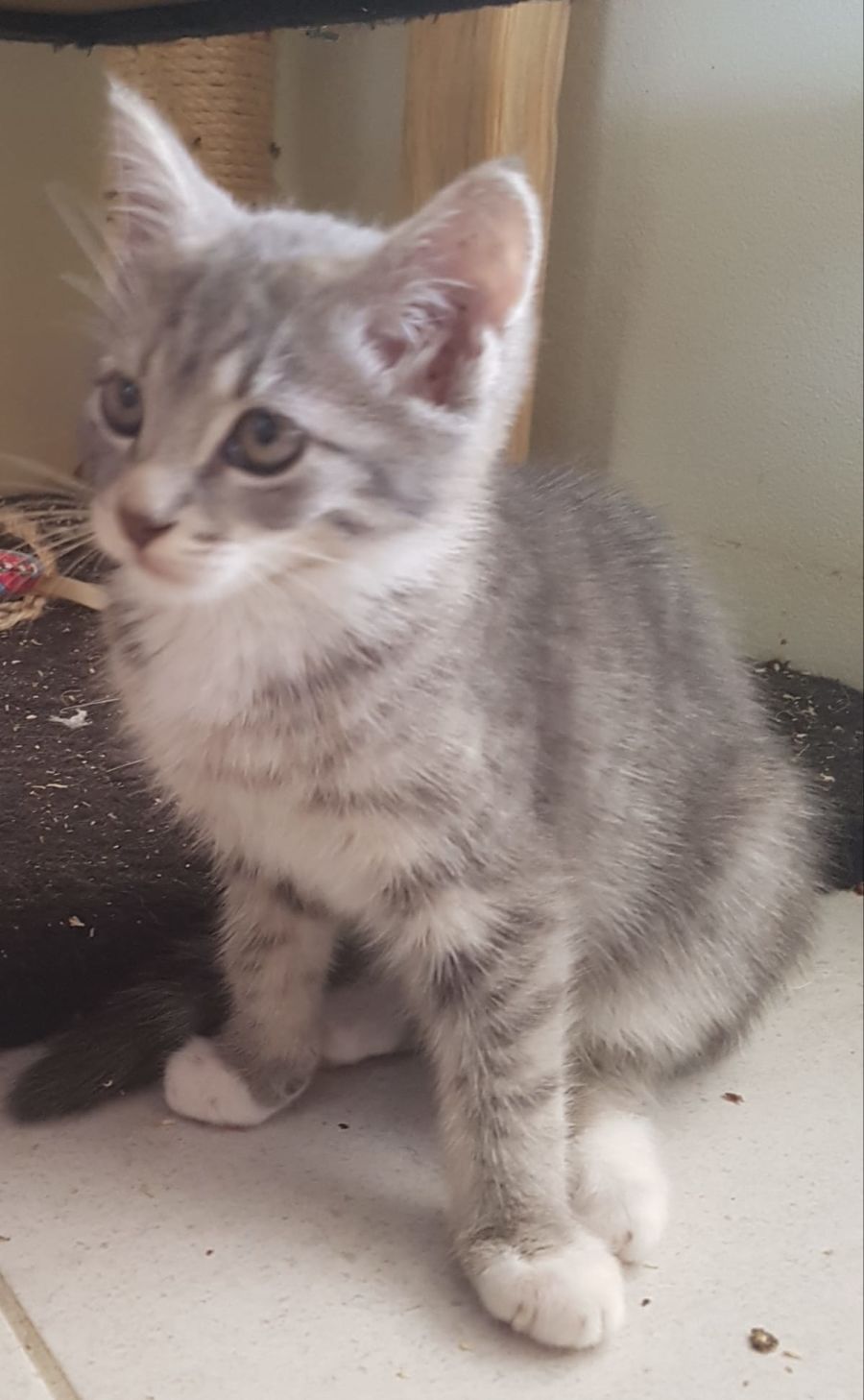 This sweet boy is still overcoming the trauma of being in the median strip in the highway at Mount Sheridan. He is beginning to trust and purr when held and learning he is safe. He has settled with the other kittens and is really a gorgeous kitten.