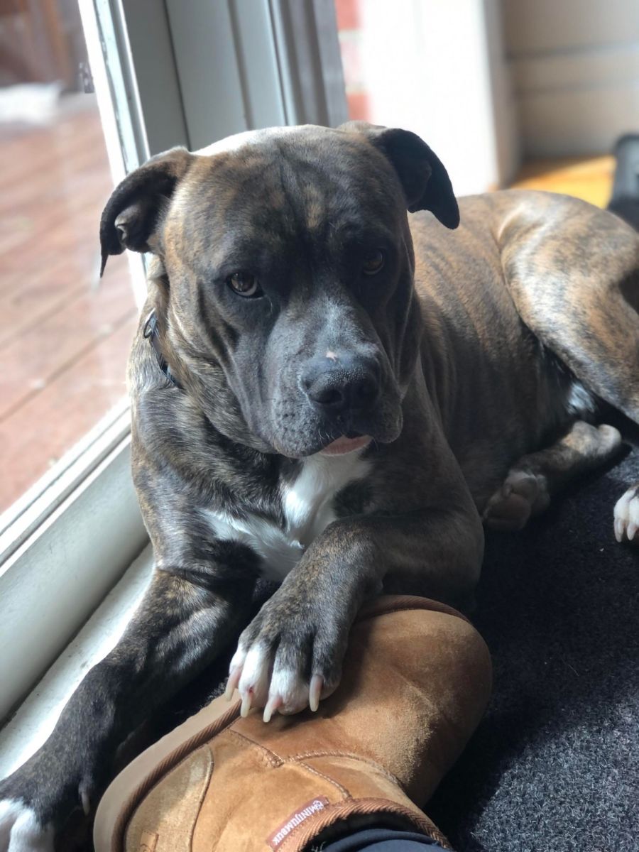 When this big softie came to us approx. 3 months ago, we knew he had a long road ahead. He was very timid, scared of everyone & anything and it was easy to see he’d had a rough up bringing. Whilst there is still some anxiety issues, it’s been heartwarming to see Nelly grow - he now knows how act like a dog!! He has learned how to play, how to sit, drop & shake. He’s a quick learner & very respectful of boundaries. He’s extremely gentle & loveeess to cuddle up on the couch. He enjoys the company of his fellow four legged friends, although he’s still scared of unfamiliar surroundings & new people in his home - particularly men. He will need a quiet home with calm & patient people. Whilst we are confident he would never hurt anyone, his bark is very alarming for new guests to the house. Though he’s seen MASSIVE improvements, he still doesn’t do that well on walks or in the car (unfamiliar surroundings) so again, patience is very important. It’s all nervousness, so slow and gentle exposure will continue to help him a lot, but there has only been so much healing he could do in 3 months.