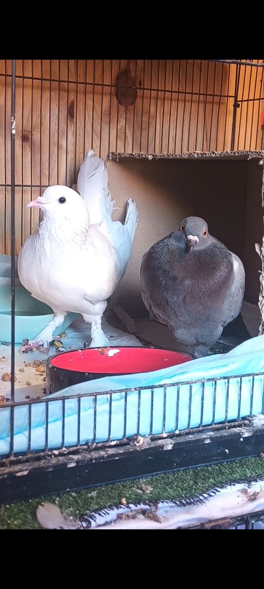 Photo of set-up required for adoption. https://www.pigeonrescue.org/2015/09/30/is-this-a-good-cage/ is a good resource for planning a cage. We're happy to advise on best cages.