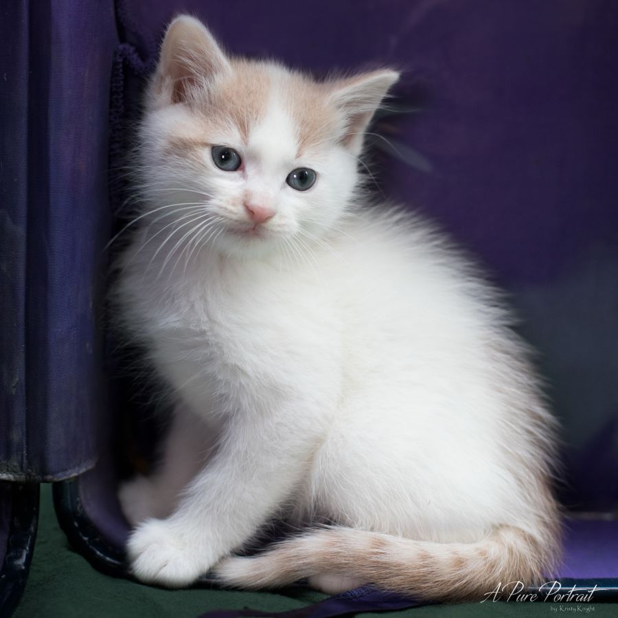He is unsure of new people and will sit back at a safe distance to observe but being a curious kitten, it doesn’t take too long for him to venture out.