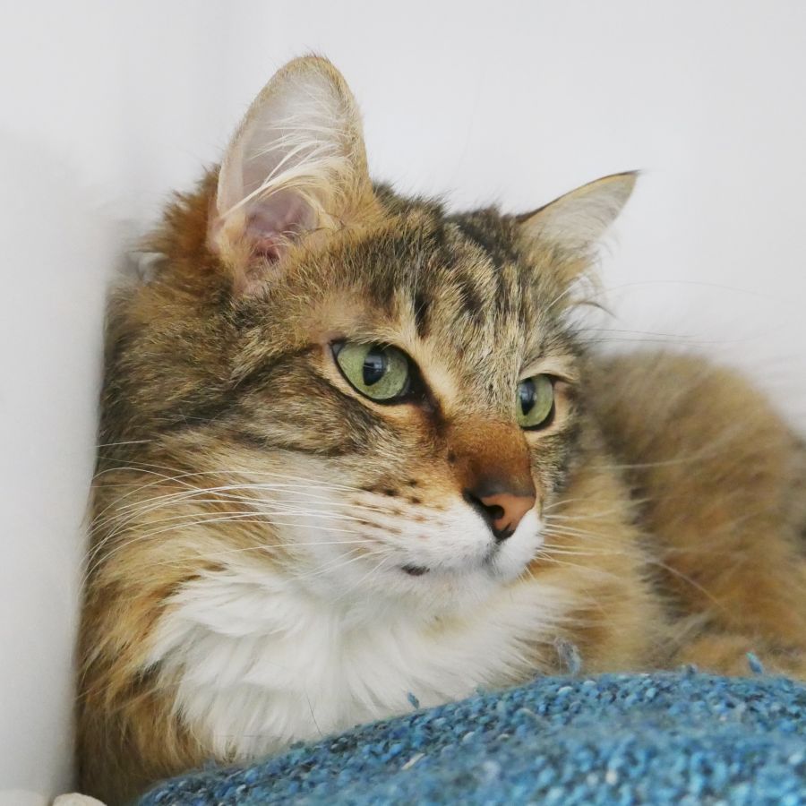 Pippin is a stunning guy who is shy when meeting new people and in new surroundings, but spend a bit of time with him and you will find he has a delightful personality. He would love a quiet home without children or other four legged family members, just you, him and your warm lap to curl up on.