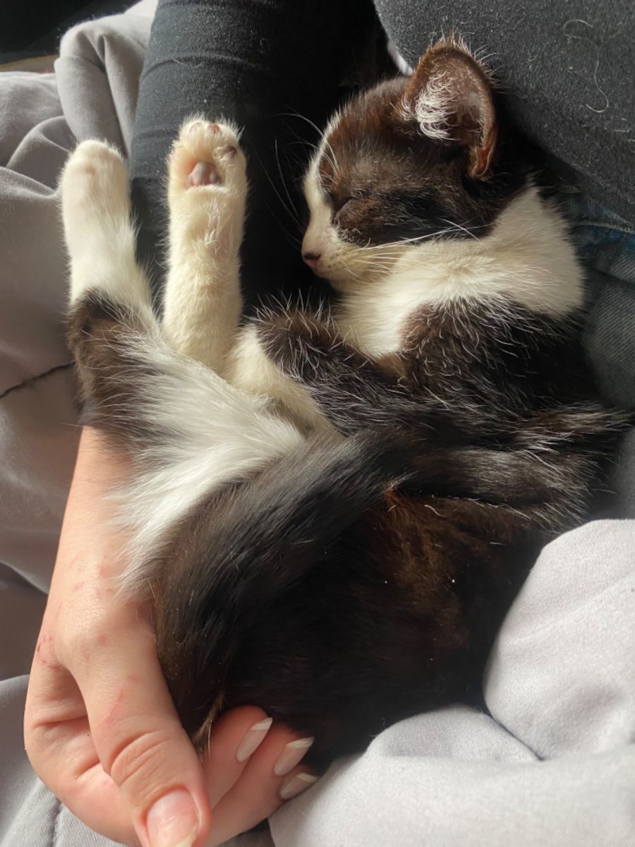 Betty had a rough start to life and a long road to recovery. She and her brother, Rambo, were born in a sick colony, where I found one of their siblings already passed away. Betty and Rambo were both suffering cat flu and malnutrition, with Rambo suffering the most. His eye was infected, ruptured and had to be removed.