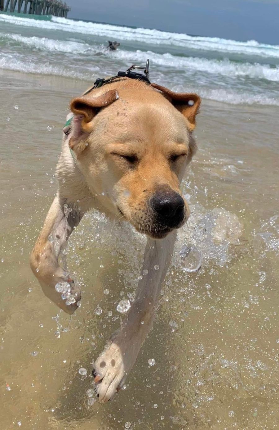Sargent loves to go to the beach and play with other dogs and his humans, and other humans if they are happy to play with him - he will try and make friends with anyone and everyone and has been known to follow another dog and family (recall is something that needs to be continued to work on) - however the goofy smile and happiness he shows makes it hard to not smile as your shaking your head at him.