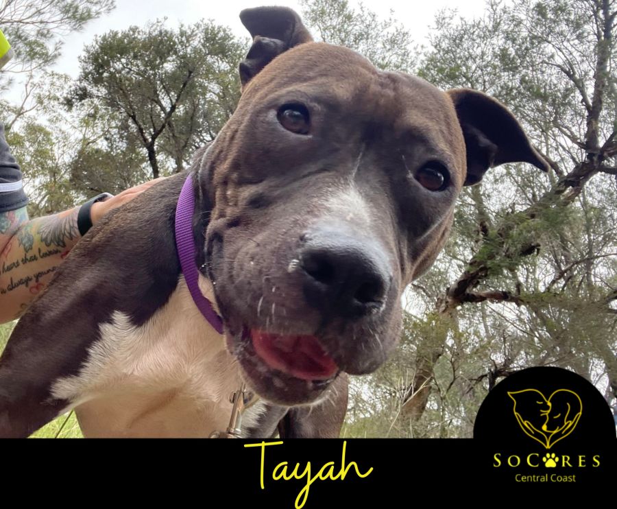 Tayah soaks up any attention given by her humans and she loves to sit and have a cuddle with you. She is calm, doesn’t jump up on you and she thinks treats are the best thing on earth.