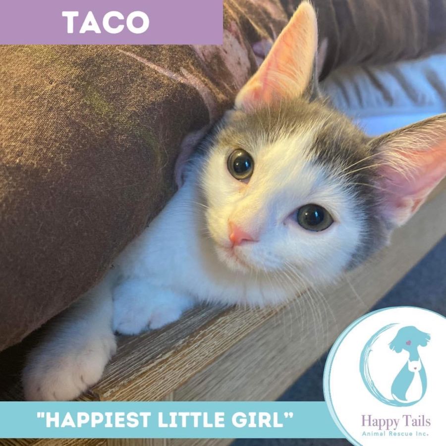 Taco is the happiest little girl! Would you like a cuddle? Taco is your girl! Would you like to play? Taco is your girl! Would you like to chill? Taco is your girl!