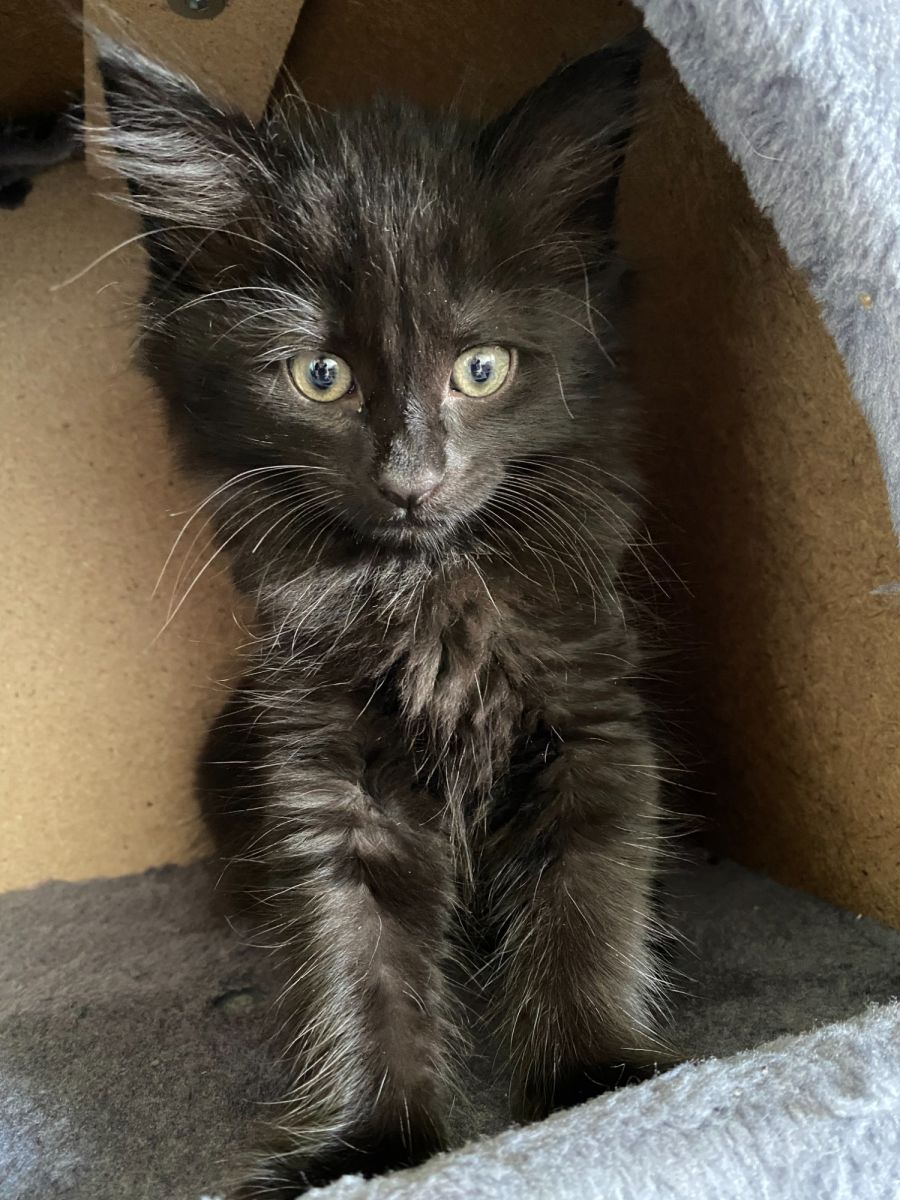 Kendra comes from a quiet and reserved litter but continues to build her confidence around people in her foster home. She will need a family that is patient with her as she develops her social skills, which are becoming more evident every day. Kendra is not particularly keen on the other kittens in her foster home and would prefer the company of one of her brothers in her forever home so they can help her come out of her shell. Her brother besties are Ezra, Jasper and Benji. A quiet home would suit her best (no young children or other pets) where she can be her true self and be treated like the baby queen she is.