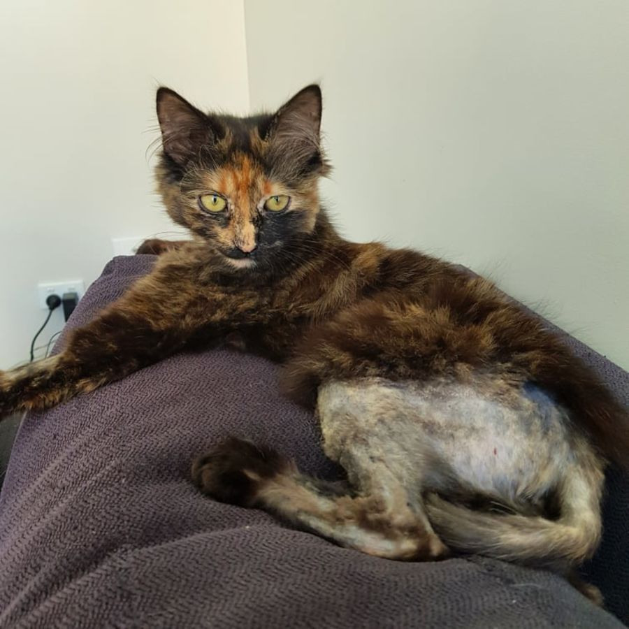Delilah is happy and healthy. She has recovered from her injuries and her shaved fur is growing back. Delilah is fully vaccinated, desexed, microchipped and is up to date with flea and worm prevention.