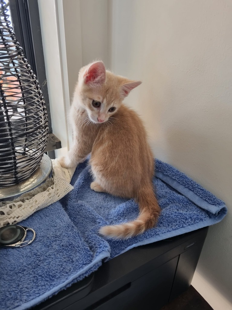 I love to climb on things and I love the scratching poles. I love to play with humans and other cats but sometimes I get too excited and get a little rough. I am curious about other cats but I'm not too sure about dogs. I like getting pats but I'm not too fussed about being cuddled. I prefer doing things and having fun.-
