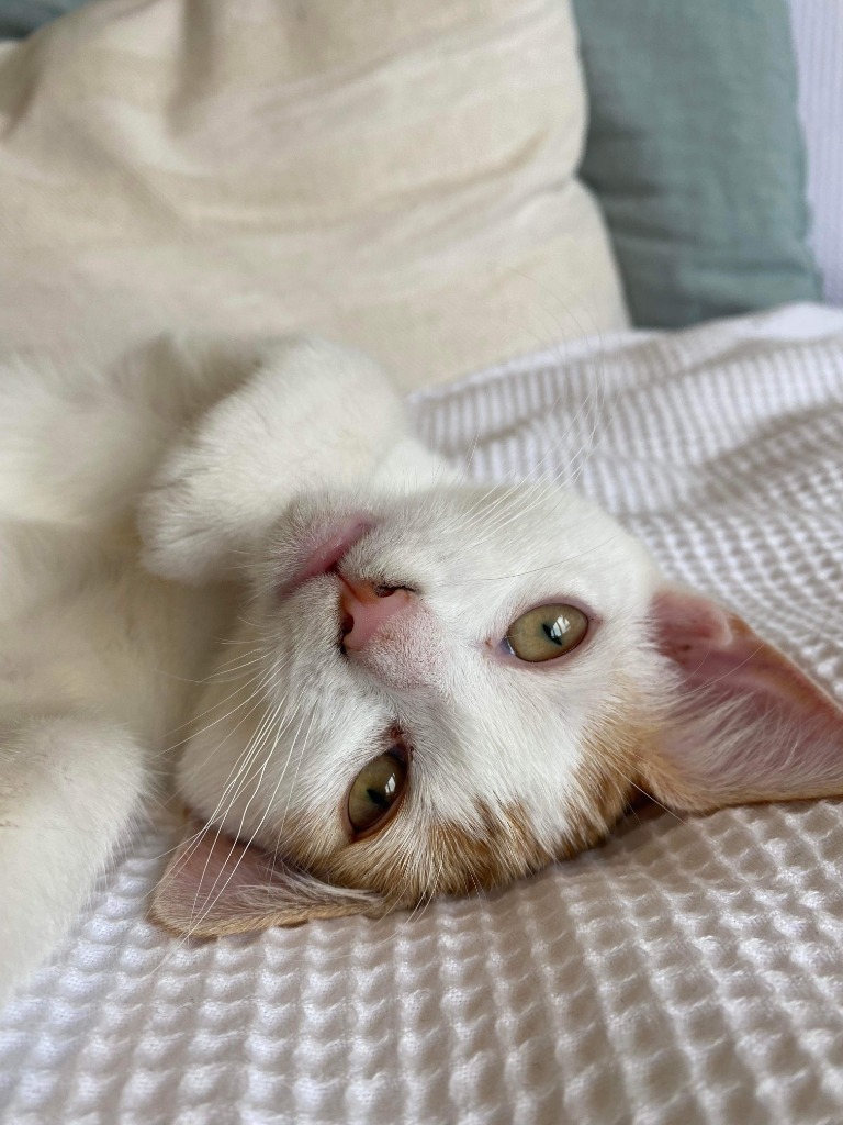 Kimi is caring, loving and sensitive. He has a calm demeanour and is always up for a lap nap. He is a little bit more timid than his siblings. But once he gets used people though, he is as friendly and loving as always. Since coming into foster care, we've found Kimi to be wise, playful, engaging, and loving.