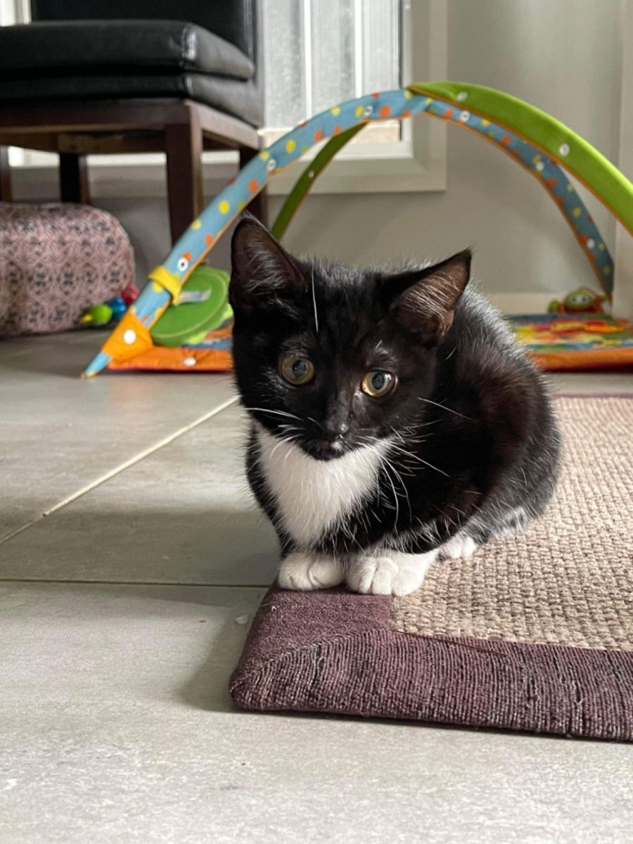 Sox was found in a box with her brother and sisters at about 3 weeks old.