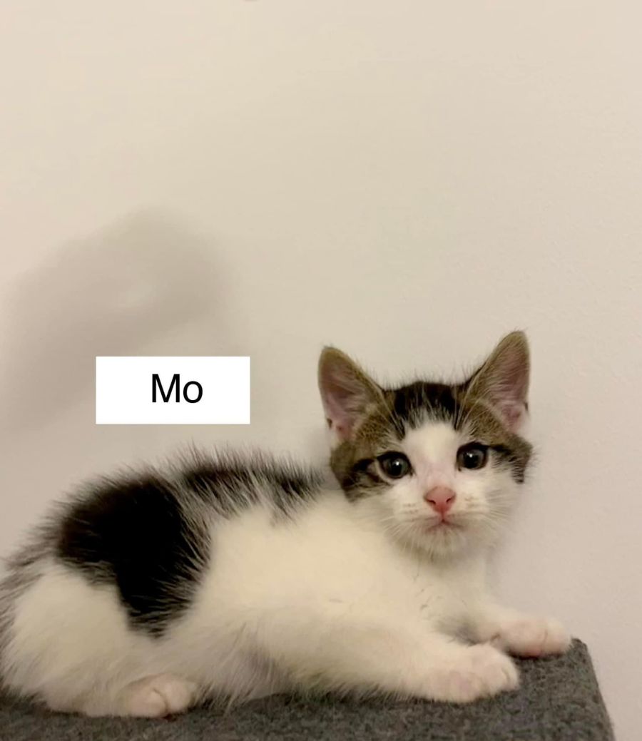Mo is playful, cuddly and friendly. He is good with other cats and children.