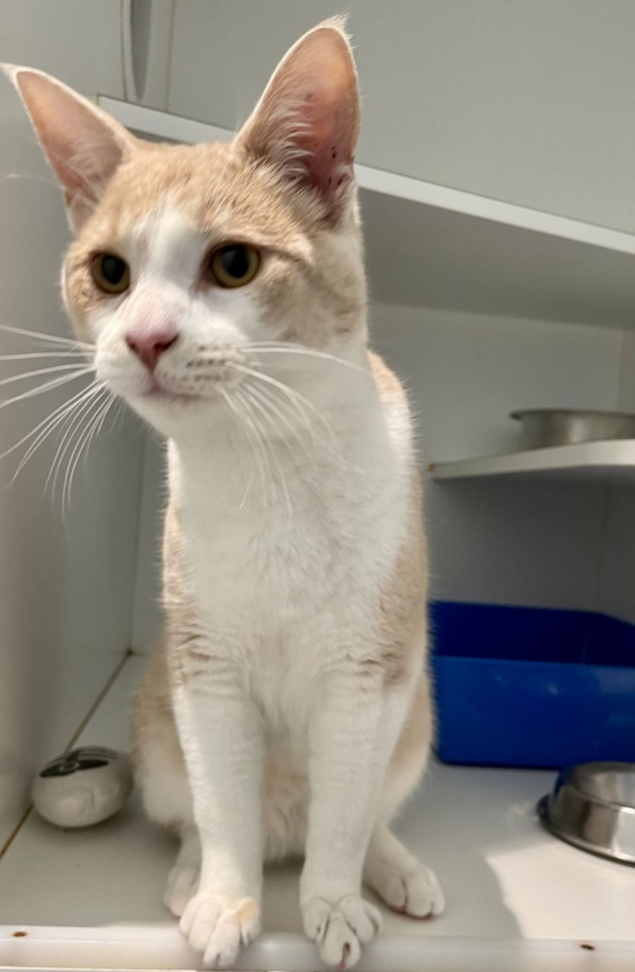 Fawny had to undergo surgery but he is now recovered and raring to go into his new home. He is super affectionate despite all he's been through, loves to tell you all about it and would fit into any loving home. This unusually coloured stunning champagne and white boy is very playful and will give you lots of love in return.