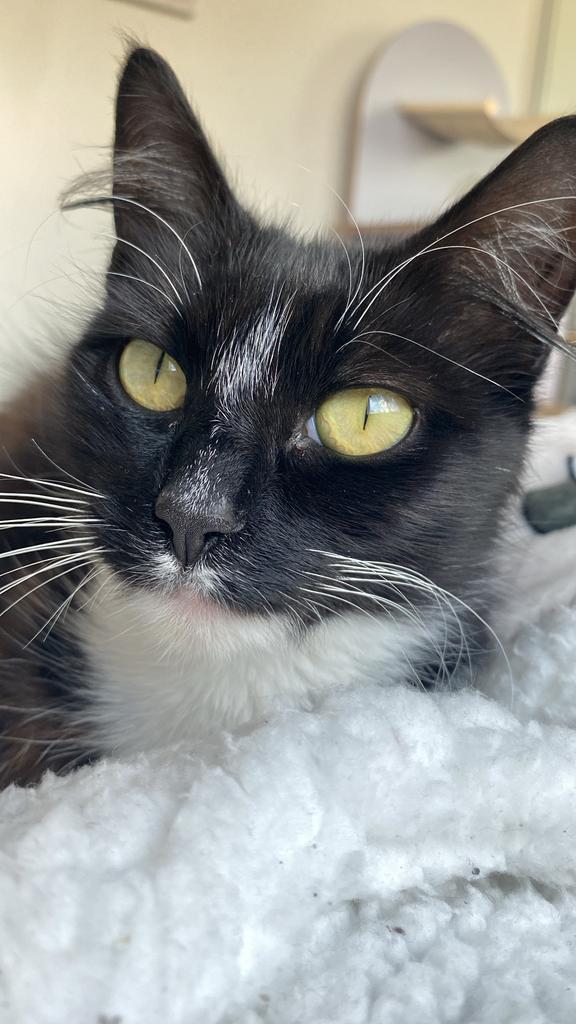 Bette Meowvis is a beautiful affectionate young lady who has taken her former life in her stride and is looking for bigger and better things. Found living on a pile of dirt this little lady is ready to live her best life. Searching for her person or persons, Bette loves to snuggle up and does not like to fight for your attention. All eyes on her. Although she is sporting a feather duster for a tail and a little bit of a bald butt currently these temporary features do not bear on her personality at all. She has all the love and more to give to her chosen one. She is learning to play but is still a bit tentative. She has been watching her room mates (4 week old kittens) and is working on her technique. A big kitten at heart is our Bette Meowvis with the most amazing Bette Davis eyes.