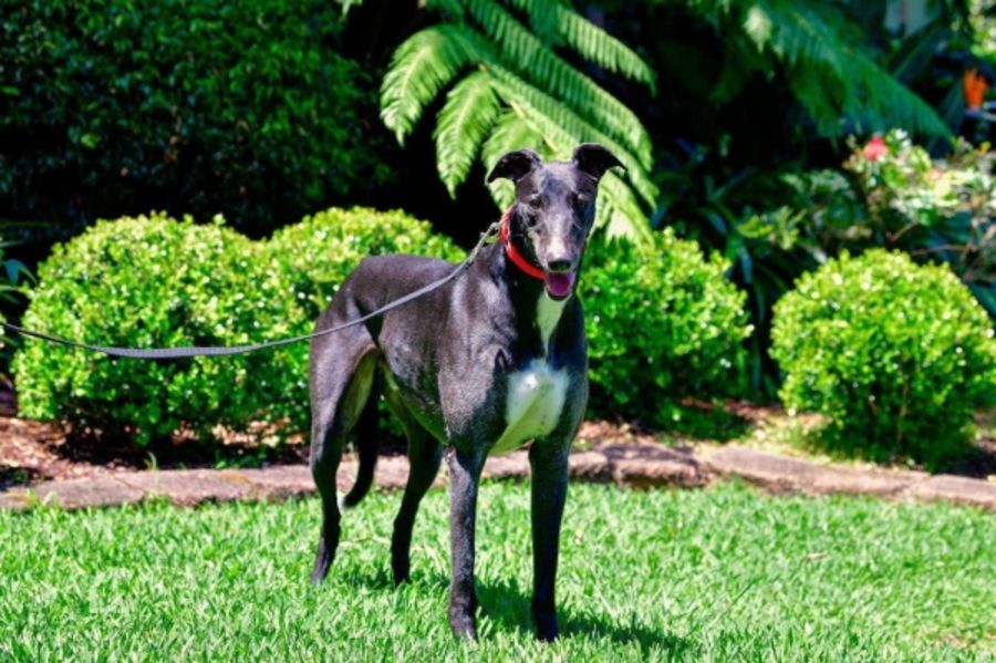 Panda is best as an only pet or possibly with a quiet, mature female Greyhound as companion. He is happy to be left on his own for short periods. He is not reliable around smaller dogs and needs to remain on lead at all times when out exercising. Quieter suburban area & experienced large dog owner preferred.