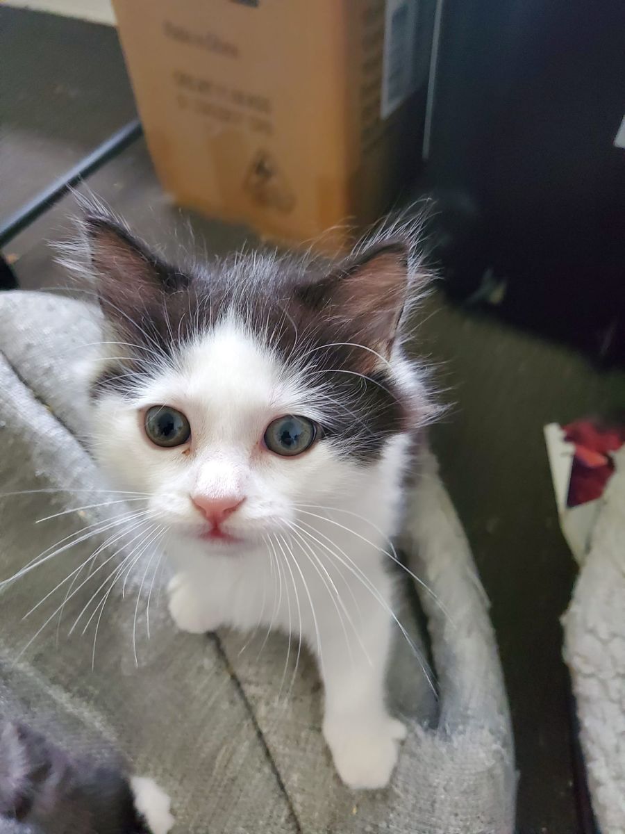 Lilith is an 8 week kitten ready to find her home. She loves to play and snuggle with her humans, and always runs right up to say hello when someone comes in to meet her.