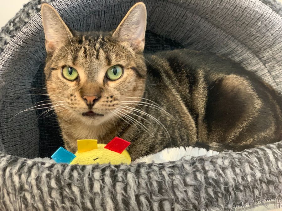 Mr McGregor! This is a guy who loves to be snug and is cuddle puss extraordinaire in the making. McGregor is pretty unsure of this whole shelter cat thing, and would love a cosy home to snuggle up in. Like many cats in shelter’s McGregor is taking his time to settle in and would do much better in a peaceful home with the TLC that every animal needs. He is another cat who will need time and patience of some big hearted cat hero to make him their number one guy. McGregor thinks pats are okay, but his greatest love is food so he will be an easy push over in the right home. McGregor is ready to purr into pampered puss life and he can not wait to get comfy in your heart and home.