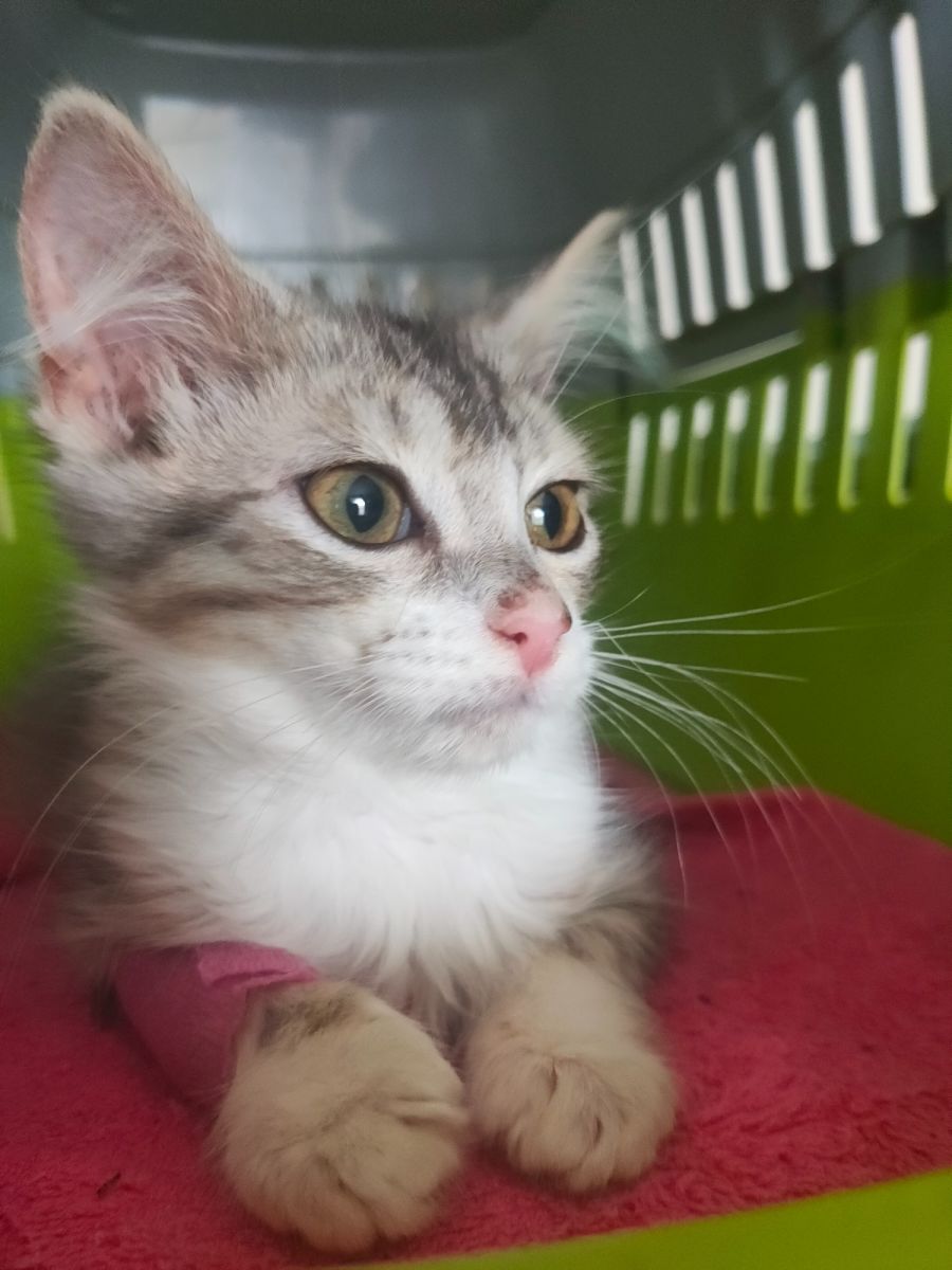 Very friendly kitten good with kids. She loves cuddles.