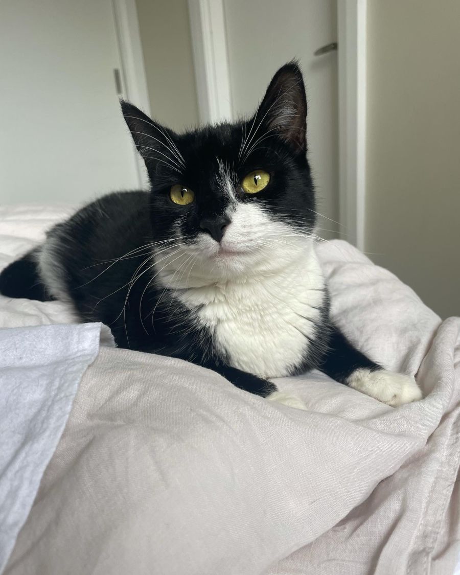 She likes to be near her humans and will curiously watch what you’re doing and come to investigate! She likes to sleep right next to you in bed or on the sofa while watching tv.