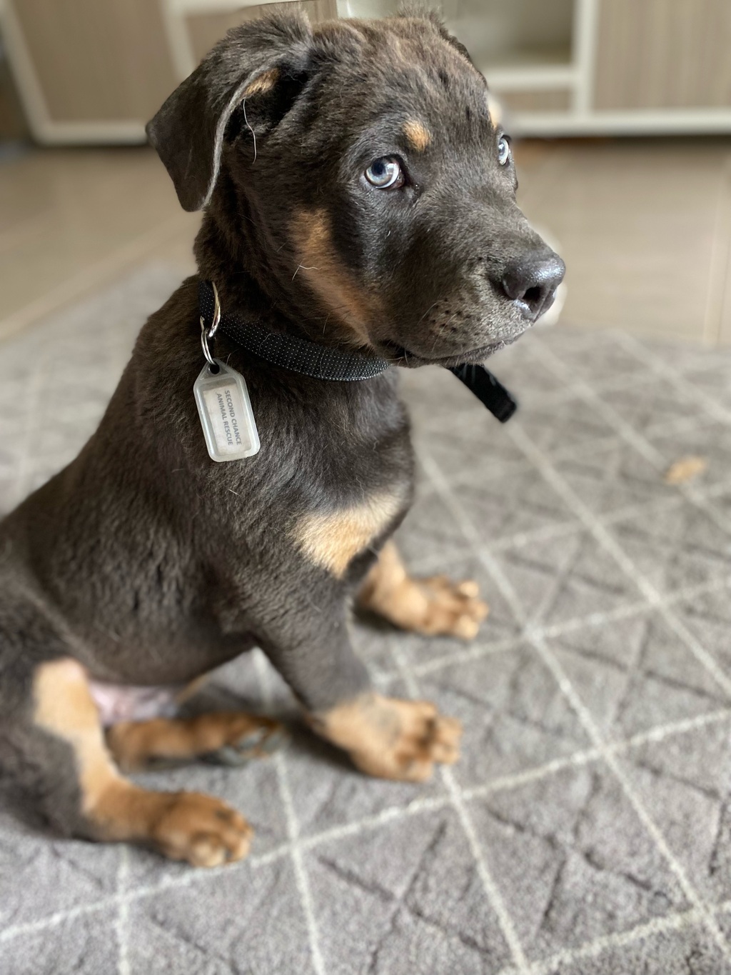 This grey Rottweiler x pup is the most adorable boy!! He is going to be a large adult dog when fully grown so needs a family that will take the time to teach him manners now, he is just over 3 months old now and he is already 15kg! His extra soft coat and rolls-upon-rolls of skin (that he is still to grow into) will leave you gooing and gaahing at his cuteness!!