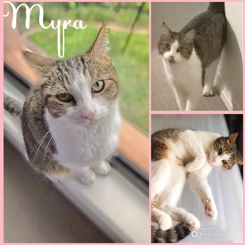 Hello world! I'm Myra. I'm four and a half years old. I can be cuddly, crazy or shy depending on my mood, and I'd love a forever home. Sometimes I wonder if only the cute little kittens get to find their perfect homes, but I have hope that I can too.