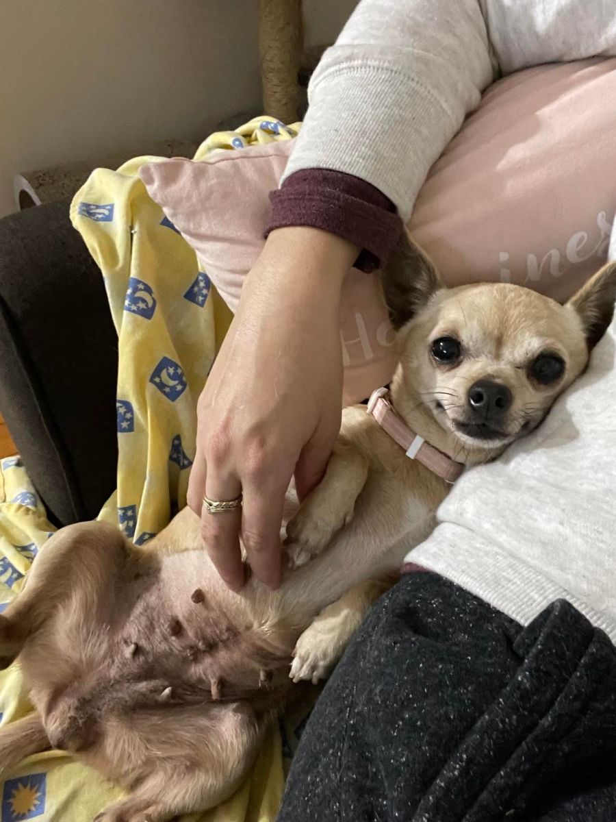 Aster is a super cuddly and affectionate teeny tiny Chihuahua. Her favourite thing to do in the evenings is to snuggle up on the couch with you and share the blanket – good thing she is only 2.6kg as she would totally be a blanket hog otherwise! Even more adorable is when her tongue pokes out while she’s sleeping. After her initial shyness with new people, she loves getting pats and will give lots of kisses in return if you let her. You can always tell when she is super happy as she has the sweetest little waggy tail you have ever seen. It never fails to appear if there is food on offer as she absolutely loves food and will demolish anything you put in front of her.