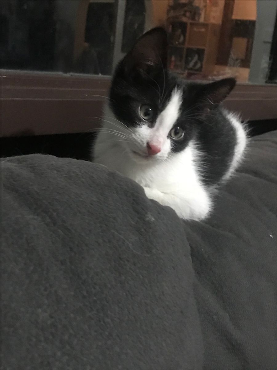 This spunk is by far the best kitty we have in care. He’s super affectionate, he loves humans so much he’s like your second shadow, he loves to snuggle up to you and he love to grab your feet and smooch against you when ever you stand still.
