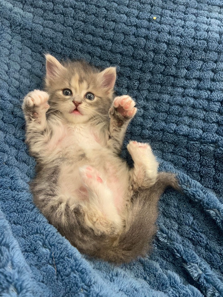 I’m very very cute - be warned - my sweet looks will have you wrapped around my paws in no time and a slave to my kitty desires for life… I have been hand reared and brought up with a slightly older litter to keep me company and kitty social. I am in care and handled regularly by 2 doting kids… I’m looking for a family and home to call my own…. Is that with you?