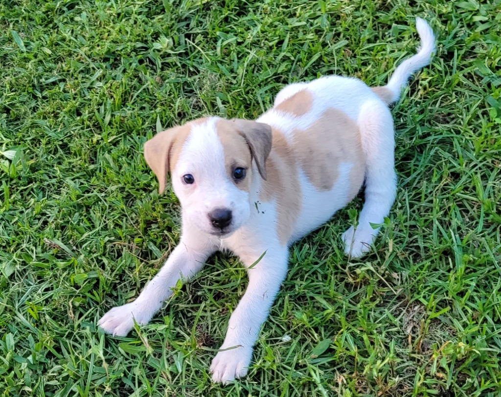 I'm a happy, playful and very friendly pup who wants a real home forever. We come from a very poor place where my mother was chained and emaciated, but she still gave her all to me and my 9 littermates. Mum is a small wolfhound, who will also be looking for a special home when she's well enough. We don't know who dad is. We've had our first vaccination and are microchipped. We really are adorable, and very good puppies. A puppy for Christmas would be lovely, but please don't adopt unless you're very sure you'll keep me for life. We'll probably be large dogs - around 25 to 30kg (but no guarantees). Come meet us. You can take us home and we'll be desexed when we're around 3 months old.-