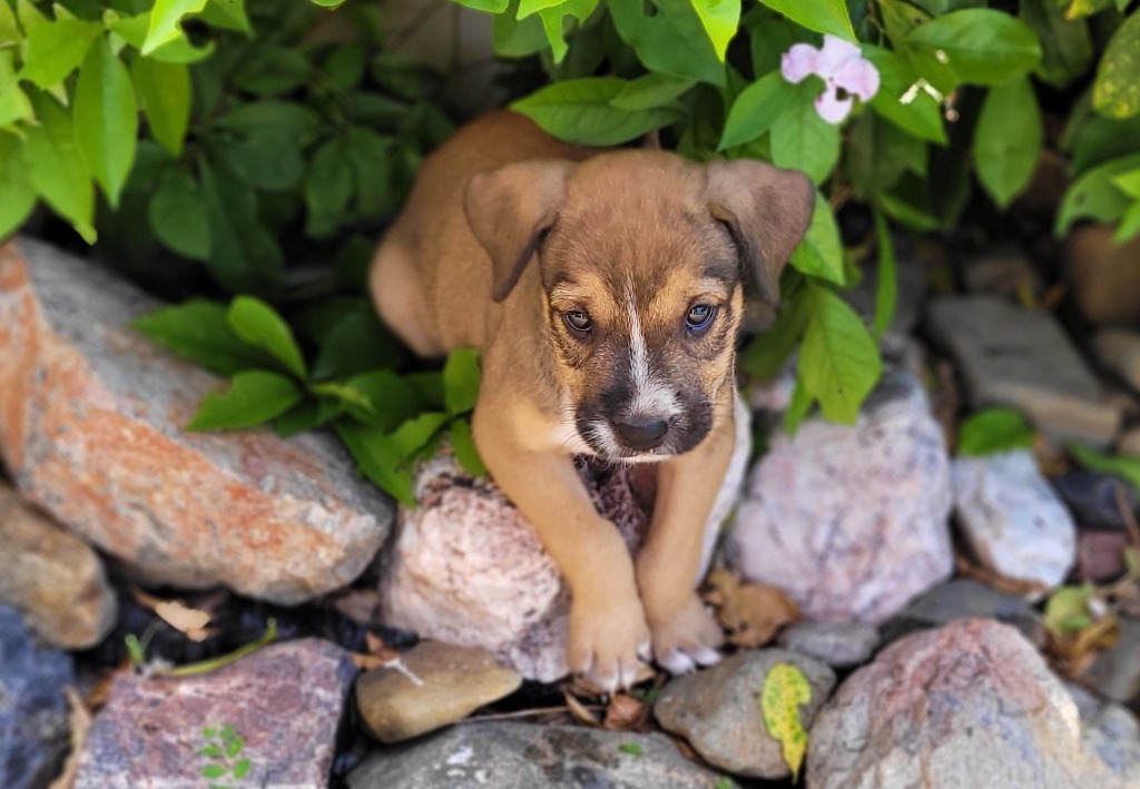 I'm a happy, playful and very friendly pup who wants a real home forever. We come from a very poor place where my mother was chained and emaciated, but she still gave her all to me and my 9 littermates. Mum is a small wolfhound, who will also be looking for a special home when she's well enough. We don't know who dad is. We've had our first vaccination and will be chipped on Thursday 16th December. We can go to our new homes from Friday 17th. You can come meet us before then and decide if you'd like me, or one of my brothers or sisters. We really are adorable, and very good puppies. A puppy for Christmas would be lovely, but please don't adopt unless you're very sure you'll keep me for life. We'll probably be large dogs - around 25 to 30kg (but no guarantees). Come meet us.-