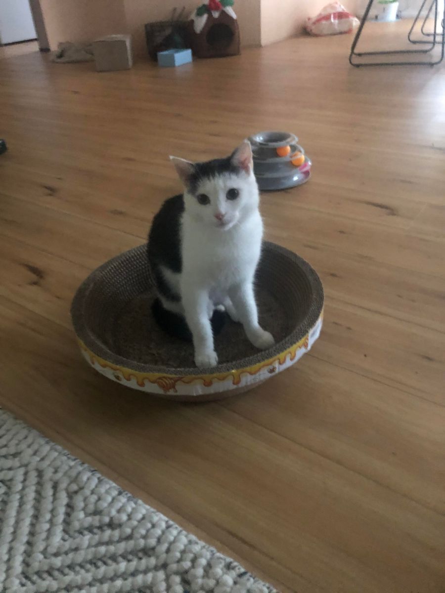 She is really affectionate towards other cats and will always confidently go to them for head bumps and attention. She is best suited for a cat that doesn’t mind their space been invaded. She looovees to run around and chase balls.