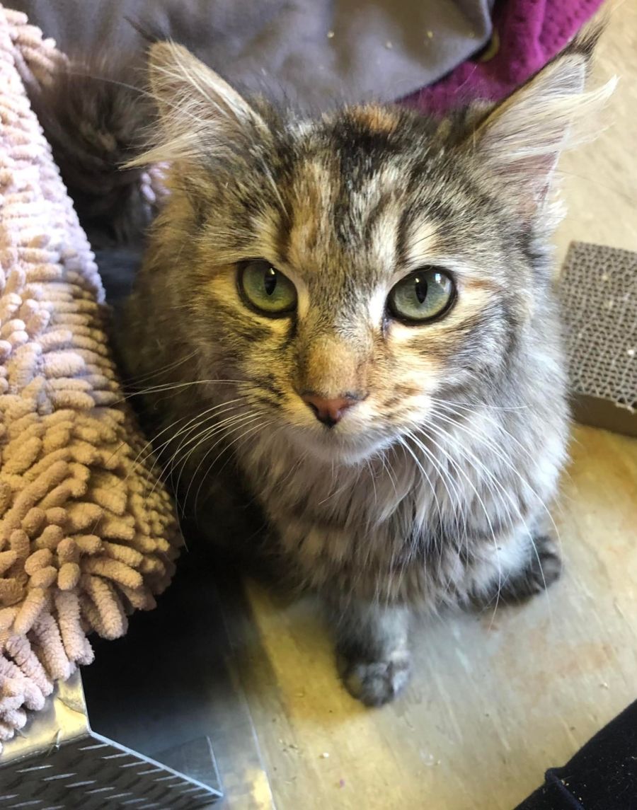 Meet Melody. Melody arrived in our care with a litter of tiny kittens in tow after being rescued from the pound. At only 12 months old she was very scared, untrusting and unsociable. Melody was come a long way since those early days and now seeks out the affection and attention of her foster carer. Melody is starting to let her guard down and it is apparent that she has a very sweet nature. She has a loud purr and an adorable little trill when she is extra happy. Melody even lays on her back for tummy rubs. We must also mention how gorgeous our girl is. She has a very distinctive coloured coat which is quite long and very soft. Melody also has a big bushy tail with soulful green eyes.