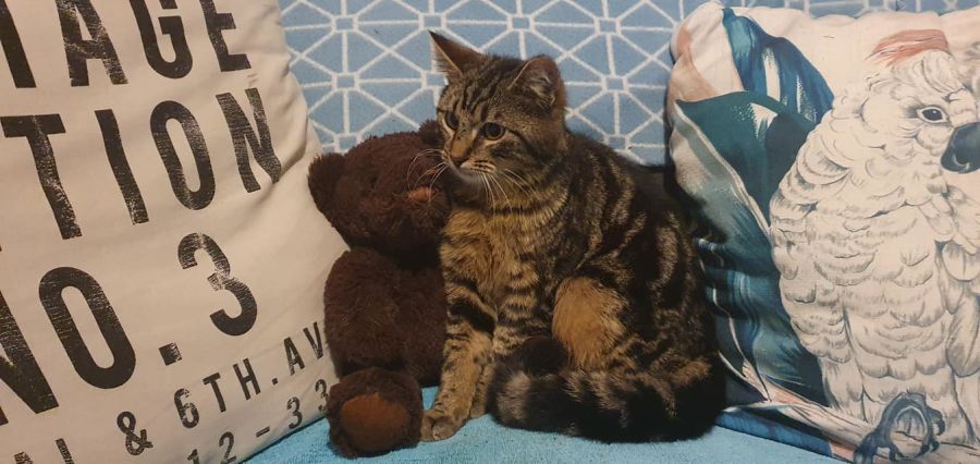 I LOVE, LOVE, LOVE smoochies! I am a massive head-butt smoocher, and will get under your feet and legs for pats and attention, so will prefer a home where I wont accidentally get stood on, or cause someone to fall over! I like to have time to myself, and would prefer a quieter home, where I can do my own thing as well; a busy or loud home may be a bit too much for me, after being on the streets for a while. I get along with all kinds of animals, provided they aren't too boisterous, or will want to smack me in the face! There was this one foster cat I shared a home with, she was THE BOSS, and she liked to bop me across the face with a paw every now and then, and I didn't know what to do! I just ran to my humans for cuddles! She was so scary! I'm more of a lover, than a fighter, so if another cat tries to scare me, I will just push my ears back and run away! I have met a few other cats and kittens that I have been friends with, and even a crazy bunny, and some friendly dogs! But I don't think I will do too well with children. I cant really predict them, and they are usually too loud and sticky, so would prefer a home with no young kids.
