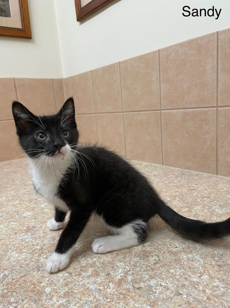 Sandy is a very sweet well natured boy. He loves to play and is super affectionate. He has spent a lot of time with kids in his foster home and loves a good snuggle. He gets along well with other kittens and cats, and has had exposure to small dogs. This handsome little guy will brighten up the room with his personality.
