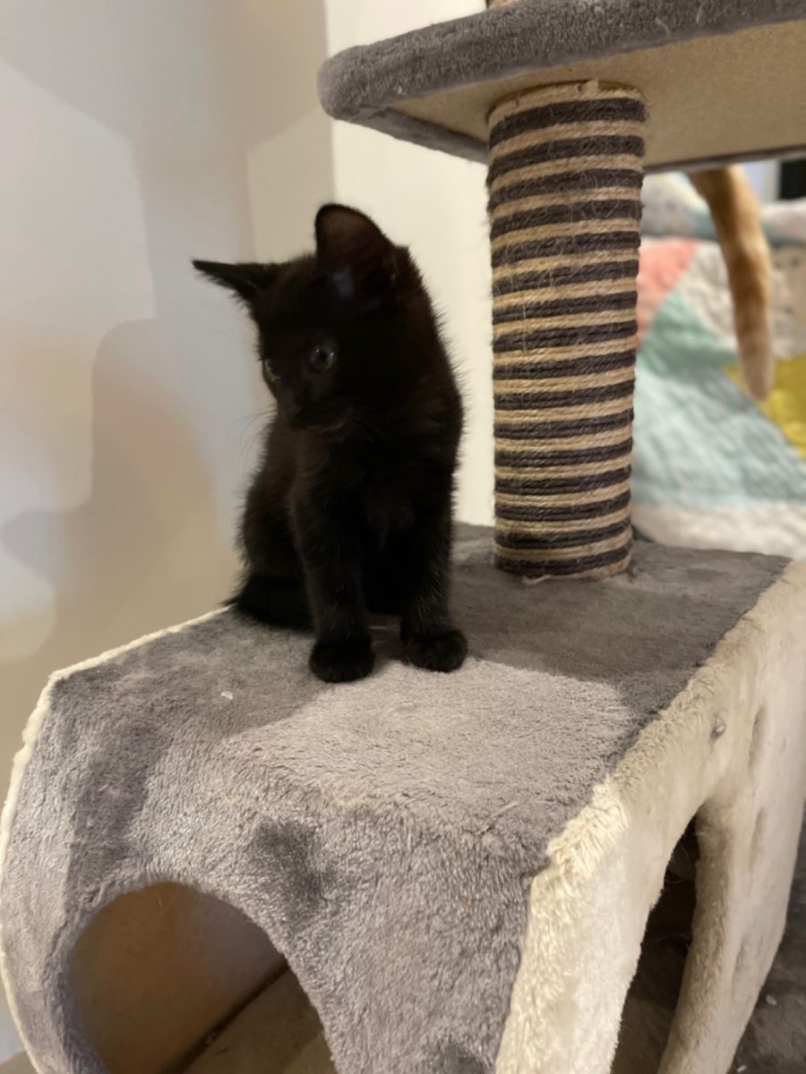 Willie is the funniest kitten around, spins in circles and loves to find a game out of anything and anyone he can find to play with him. After a play he takes himself off to find a nice comfy , quiet spot and has a long nap before he finds a spot at the window ledge in the sun. Willie has been in foster care with large and small dog, adult cats and young children. He is a confident kitten who isn’t fazed by to much in his foster home and happily finds his own fun with cat toys often tossing them into the air and pouncing on them making you laugh.