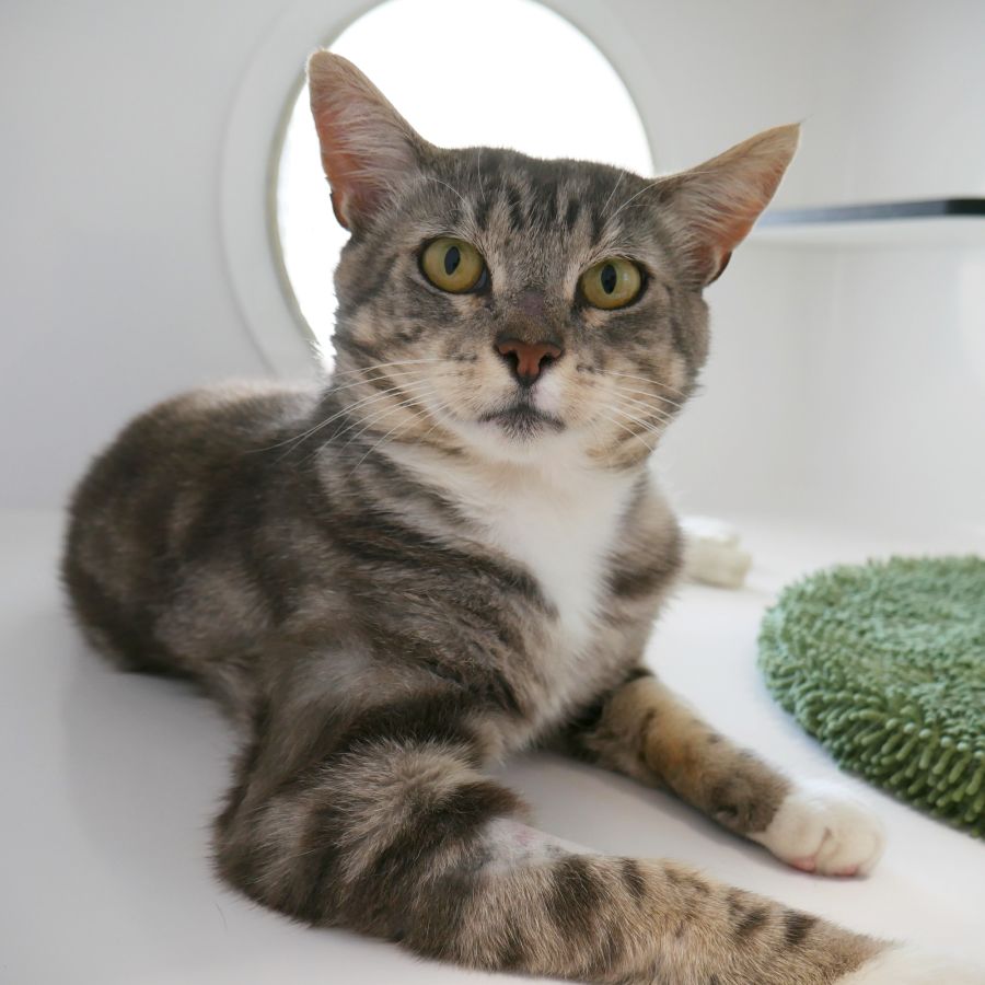 Evan is a stunning guy who is on constant vigil as he does not want to miss a single thing. He is extremely cleaver and also naughty, he has not been taught manners and gets very carried away when focused. Evan needs an experienced cat savvy home that is willing to work with him to not only teach him manners, but also one that understands he can be mischievous and will need plenty of either company or enrichment to keep him entertained.