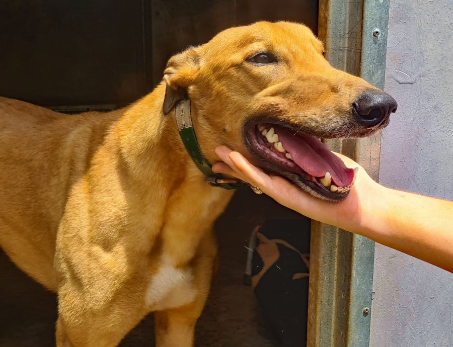 Atom is a beautiful affectionate loving boy. Has raced but only once, he just was not interested at all, all he wants to be is a pet in a family environment. He just loves being around people including kids, he would make a great family pet and he gets on with other dogs.