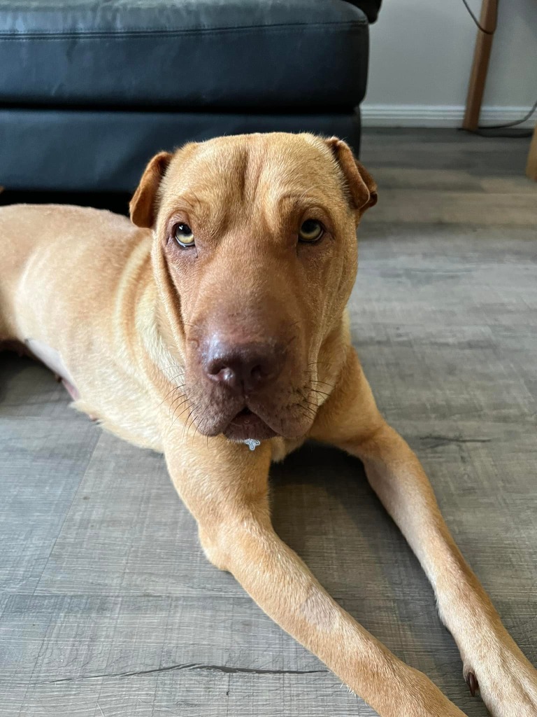 Marley is a very quiet girl, only weighing 21kg. She is learning to relax with her foster humans. She’s wary of men but is getting better every day. She loves her foster brother and they have fun together but spend most of their time quietly chilling out.