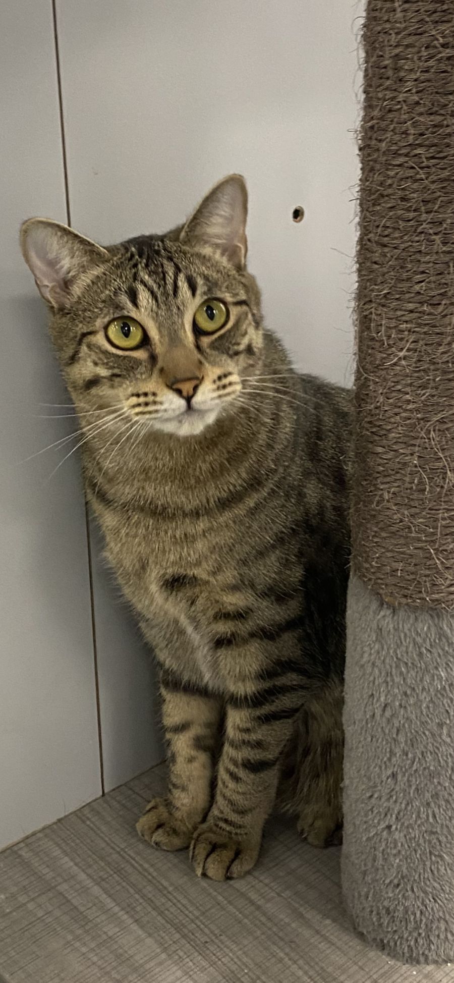 I have a sassy personality which my conservative foster sister (cat) didn’t really like, but I like everyone and would love to eat-sleep-play all day with my new family furry or not. I don’t really do well with string toys – but maybe something with a dangly toy on the end will be more fun.