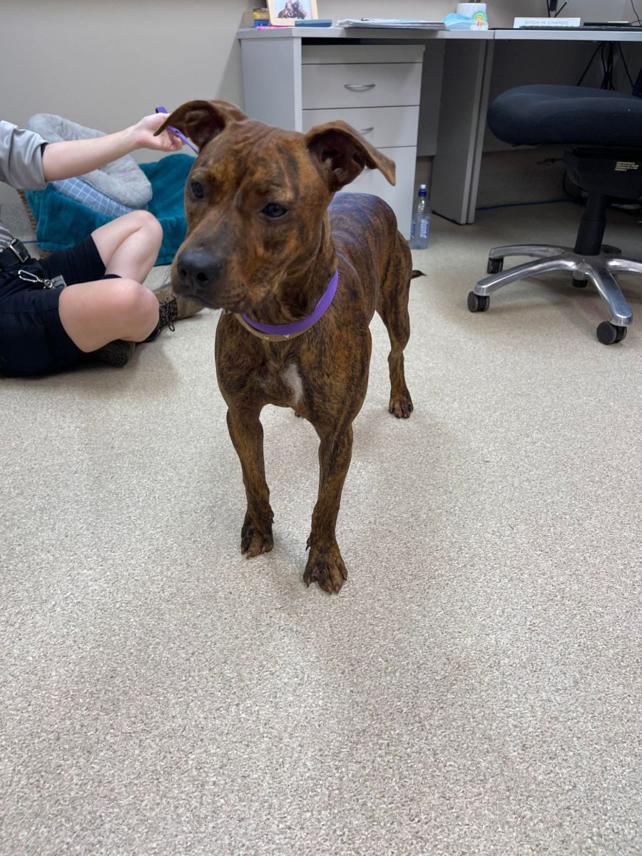 IMP 341 PEPPERMINT. Peppermint is a brindle female medium sized crossbreed, approx. 6-9 months old. She came to us as a stray and was unfortunately not reclaimed. She has been a very happy social pup here. She is also very energetic and requires consistent training and a committed home. Her adoption fee of $400 includes microchipping, registration, worming, flea treatment, vaccination, desexing and a bag of dog food. She is currently being desexed so ready for adoption from Saturday 18th December. If interested please call 6583 3488.
