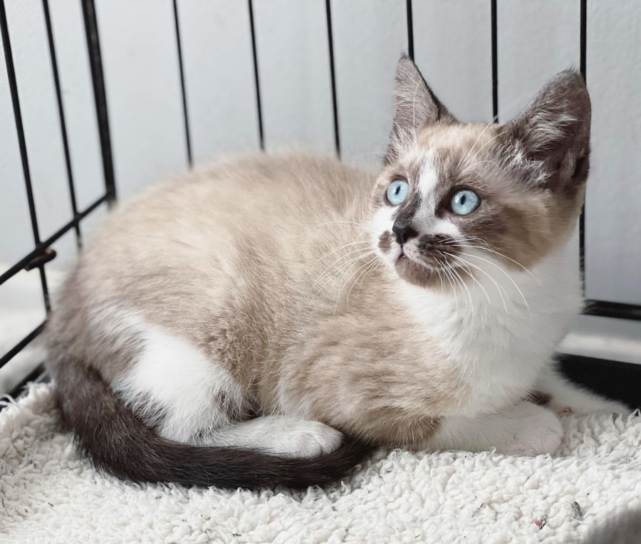Zoya is a gorgeous seal point little lass who came into care with her young mama and littermate sister.