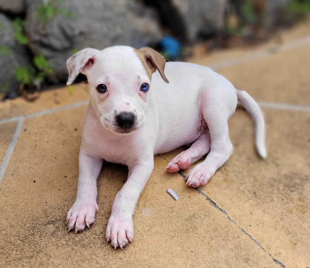I'm a happy, playful and very friendly pup who wants a real home forever. We come from a very poor place where my mother was chained and emaciated, but she still gave her all to me and my 9 littermates. Mum is a small wolfhound, who will also be looking for a special home when she's well enough. We don't know who dad is. I've had my first two vaccinations and I'm microchipped and desexed. I'm a very sweet boy, and also a little different. My left eye is half blue, half brown! I'll probably be around 25 to 30kg when I'm all grown up (but no guarantees). I really love playing with my sister, and I love other dogs too, and children. What's not to love?-
