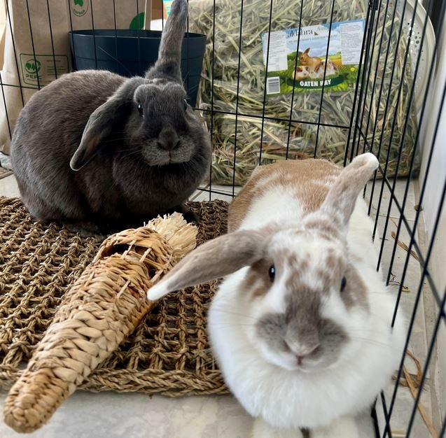 Want to know how to keep a bunny happy? We rabbits need a calm, stress free environment, so suit adult owners or gentle children. We like to spend most of their time with our Loved Ones, with just a bit of outside time if it's good weather. We don't cope well with heat, so when it's hot, keep me inside with the air conditioner on. A healthy rabbit diet includes good quality hay, vegetables, leafy greens, fruit, seeds, roots and herbs. I'll love it if you build playground tunnels with different levels to jump on, hide away and dig in, especially if you change it around from time to time. Sticks and bark are great to chew on. It's important for me to have at least four hours a day to roam freely around the house or bunny secured yard.