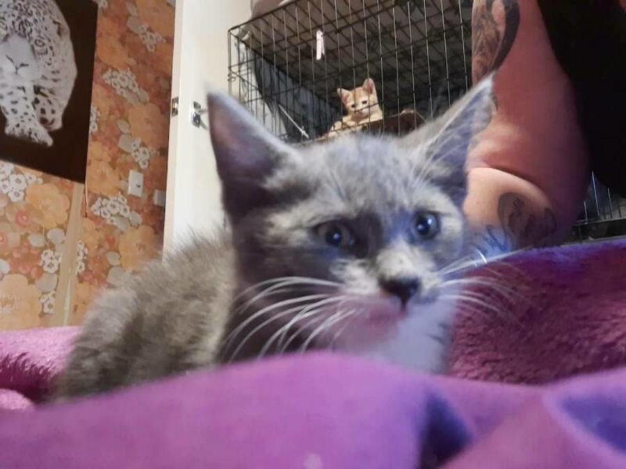 James came into care with one of his siblings – Moneypenny. The other sibling M was trapped several weeks later. James was a little hissy spitty when he first came into care but he has cleaned up his act and become the little poster boy for good kitten behaviour. He is a little thinker but explodes into action and fun-filled playing when something catches his eye. When you first meet James, he will be quiet and watch you closely but once he knows he can trust you, this little boy can be a cuddly bundle.