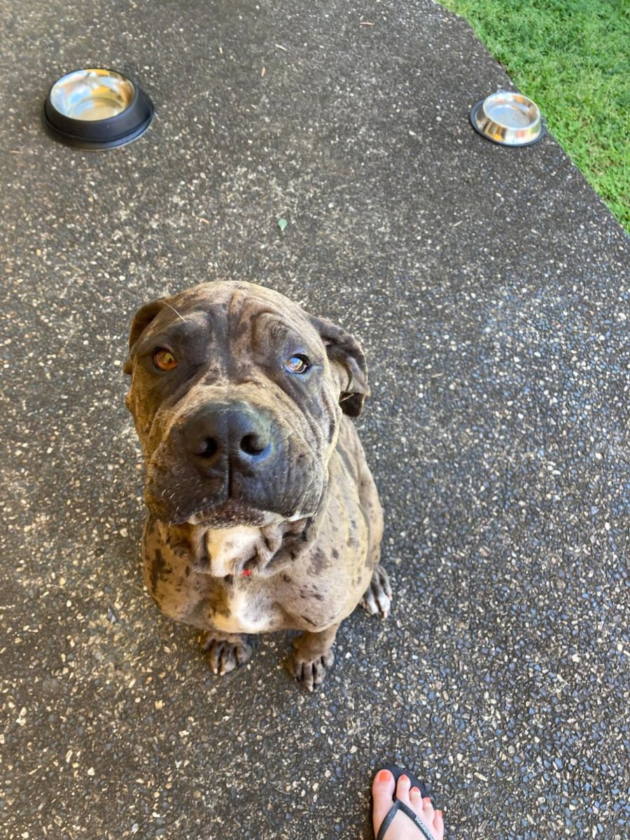 He is still spooked by men but once they show him they aren’t going to cause harm, he warms up to them super quick! This boy is a head turner and a smooch, making almost everyone he walks past stop and have a chat to him and give him lots of pats!