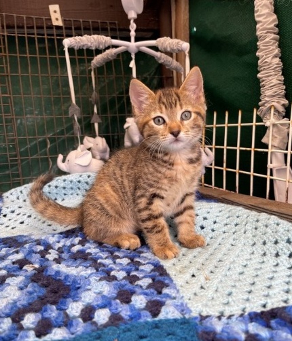 Introducing tiny Chloe, the littlest one of her litter but she is big on energy and boy can she hold her own when playing with her siblings. She loves to play with her own feet and has a habit of sneaking up on you when you least expect it. She is a sweet little thing who will need a calm home. If you would like to adopt this cute little girl, please apply now for a pre-adoption application.