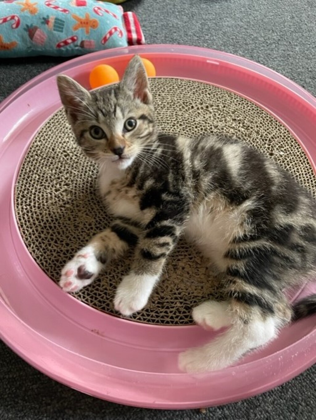 Maeve is a lovely young kitten. She was born in foster care along with her 4 brothers Jamie, Colin, Garry and Tiny and sister Nigella. She is a friendly girl and just loves to play. She will be desexed next Wednesday and will be available for adoption Thursday 23rd Dec. Just in time for Christmas! If you would like to apply to adopt Maeve, please hit the enquire now button.